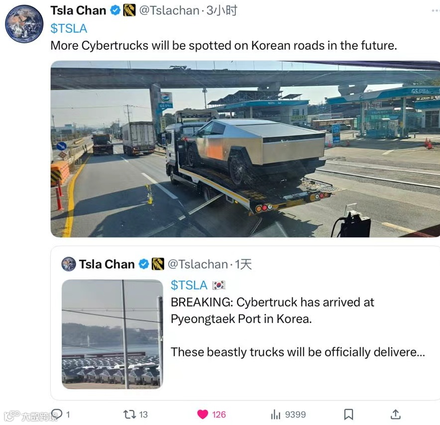 大批Cybertruck已到达韩国!月底将迎来大量交付。