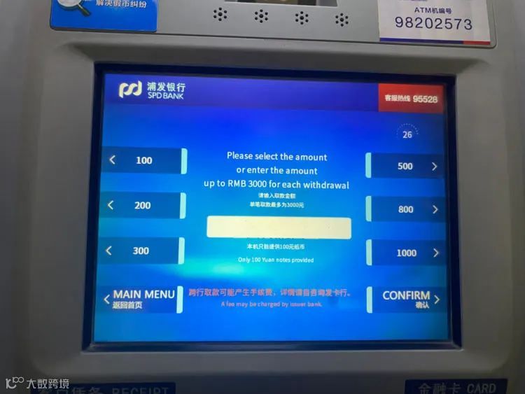 ● 由于取款有手续费,在输入取款金额的时候,需确保卡内可用余额可以足够支付取款金额+手续费,要不会因为卡余额不足,导致ATM取款失败