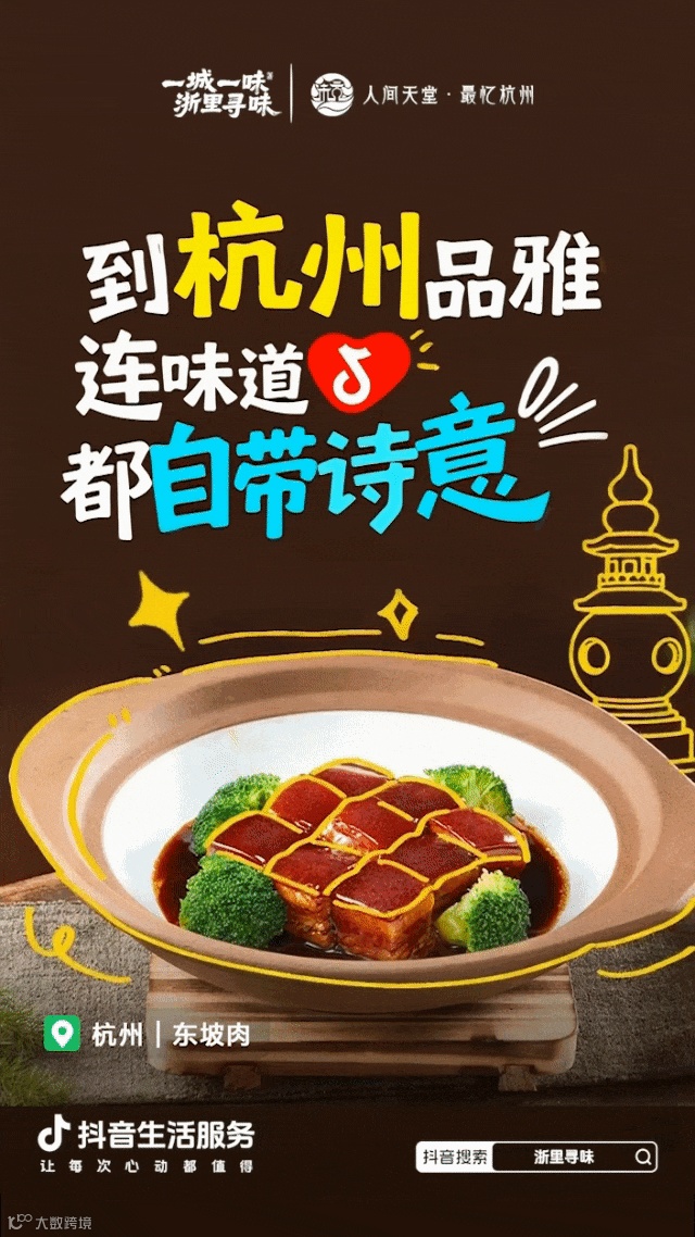 抖音生活服务携手浙江省文旅、五城文旅局共同打造“浙江味觉锦标赛”接力视频,向本地用户及旅客安利地道的浙江家乡美食,不论是杭州的雅致、宁波的鲜醇、金华的世界风、还是温州的鲜活、绍兴的醉韵,每一口都是官方盖章认证,这波权威背书直接把信任感与期待值拉满!