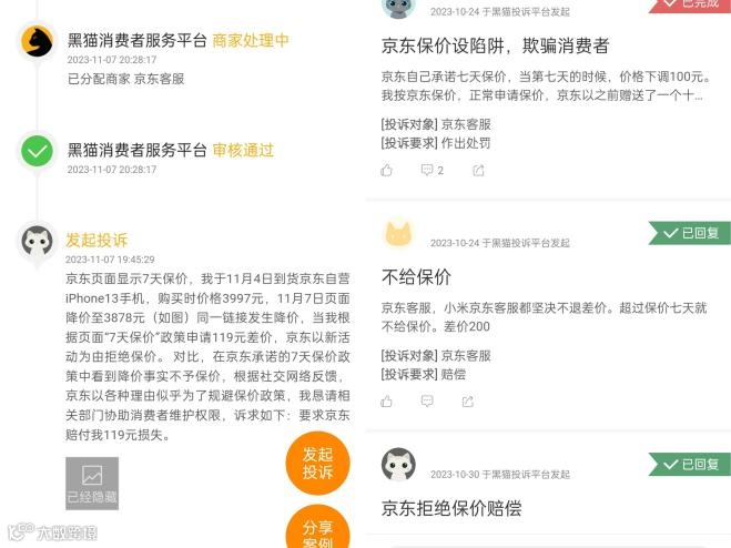 这样类似的保价问题也屡屡发生在其他电商平台。与此同时,保价相关细规隐藏深、客服推脱不执行等问题也常常出现。