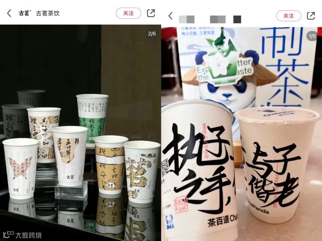 有的品牌率先在包装上做文章,茶百道、古茗等茶饮品牌将书法融入到包装设计中,笔墨之间挥洒的尽是中华千年的文化底蕴,借此吸引“血脉觉醒”的年轻用户。