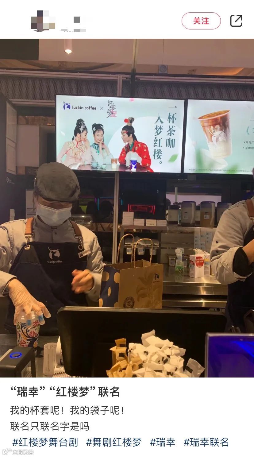 瑞幸与舞剧《红楼梦》的联名便是印证之一。习惯于瑞幸高举高打的营销动作,用户对瑞幸联名的期待值一向很高。然而,或许是筹备时间过于仓促,瑞幸此次的联名不仅没有推出新品,也没有赠送杯套、纸袋、周边。从外观设计来看,没有任何联名款的独特标识,不少用户直言,“联名联了个寂寞”。