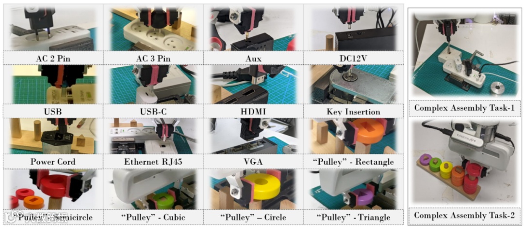 因此,当前方法更多体现的是基于位移控制的运动能力,尚未触及精密装配中对力控与动态调整的核心要求。一旦面对如VGA接口插接这类精度要求稍高的任务,装配成功率便显著下降,反映出当前技术与工业级装配所要求的高精度操作之间仍存在本质差距。
