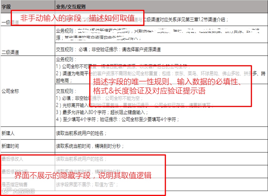非输入字段:任何不需要用户输入的字段,如计算字段或自动生成的字段,也需要在需求中说明其生成或计算方式。
