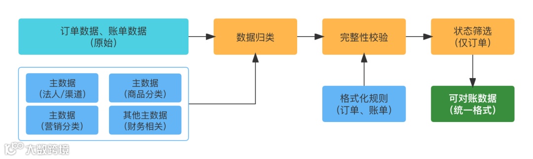 数据获取后,进行有效的归类、验证、格式统一,以支持对账处理,暂定为数据准备模块;