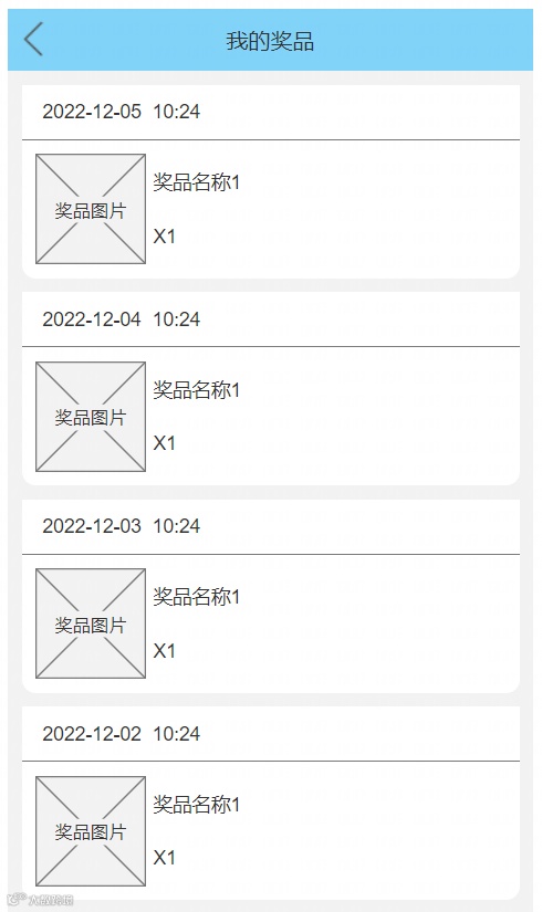 我的奖品页面包含:中奖时间、奖品图片、奖品名称和奖品数量; -