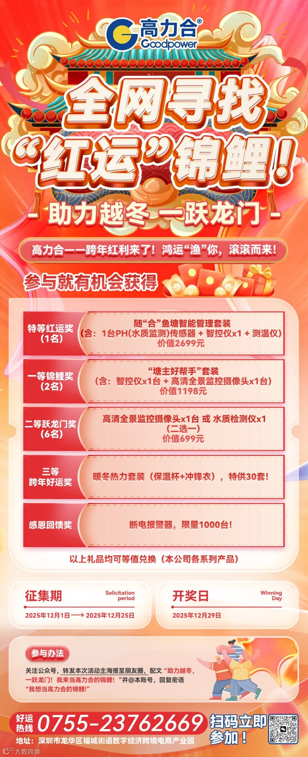 导读:岁末将至,跨年启新!为感恩广大养殖户伙伴一路以来的支持与信赖,特于12月推出“红运跨年 惠享养殖”主题福利活动,海量重磅奖品等你来抽,助力大家轻松养殖、温暖跨年!