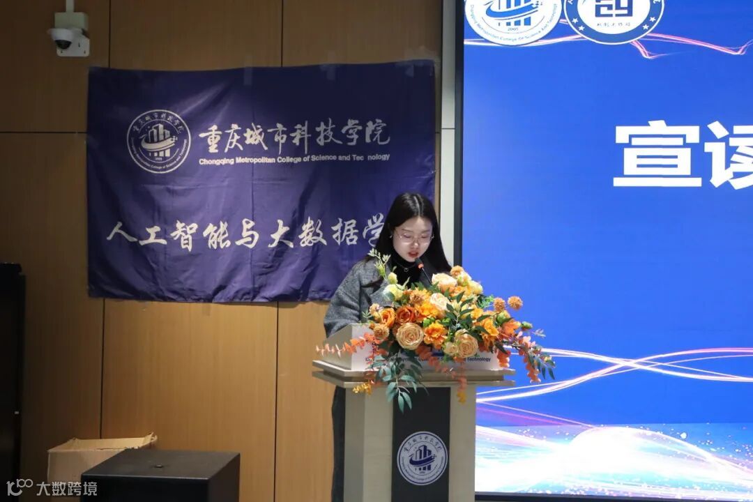 随后,第五届双创工作站站长刘汶坤作就职报告。他表示,将带领新一届团队,以“传承、创新、服务”为核心,一方面延续第四届工作站的优良传统,做好赛事服务、资源对接等基础工作;另一方面将探索“数智+双创”的融合路径,打造更具学院特色的双创活动品牌,不辜负领导、老师与同学们的信任。