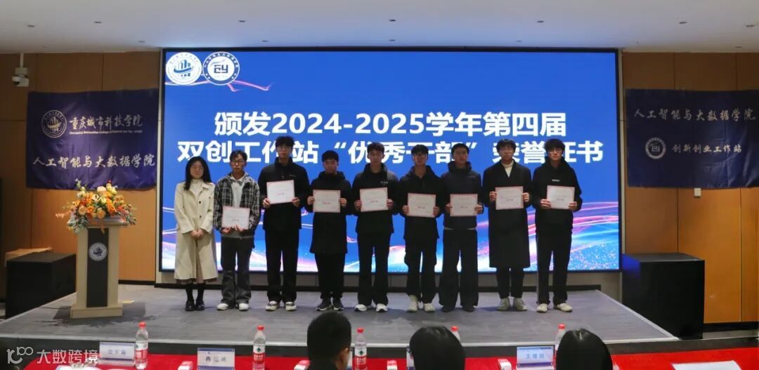 接着,团学指导老师王维田宣读《关于表彰创新创业工作站2024-2025学年优秀干部和优秀干事的决定》,学生第三党支部书记兼双创工作站指导老师冉超成与心理工作站指导老师何帆分别为荣获“优秀干部”“优秀干事”的同学颁发荣誉证书。一份荣誉,不仅是对过往付出的肯定,也是对未来的殷切期许。
