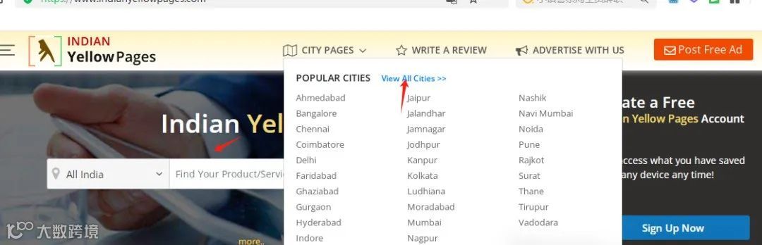 这是印度的一个企业名录,我们可以根据他的城市来查询客户,