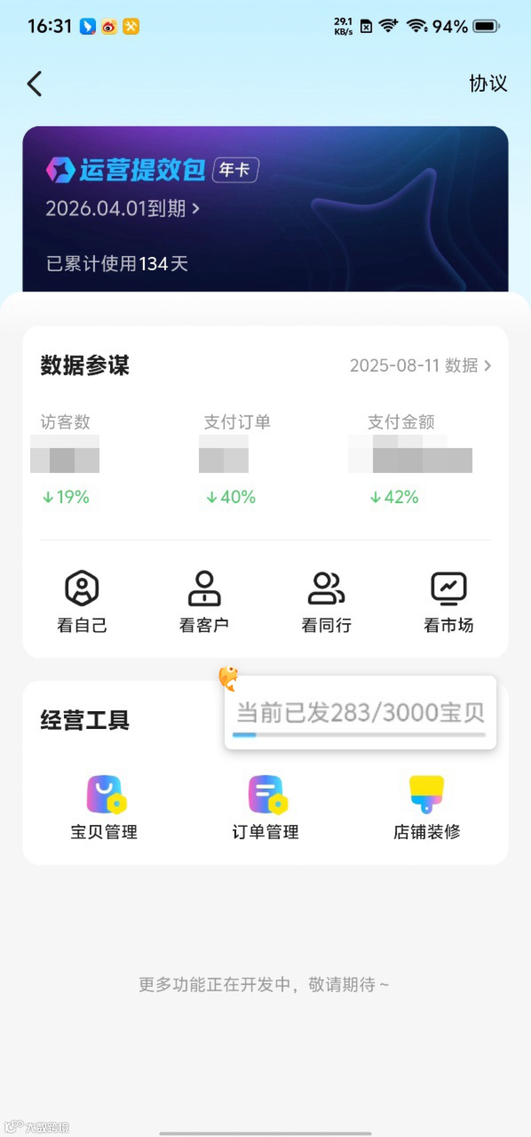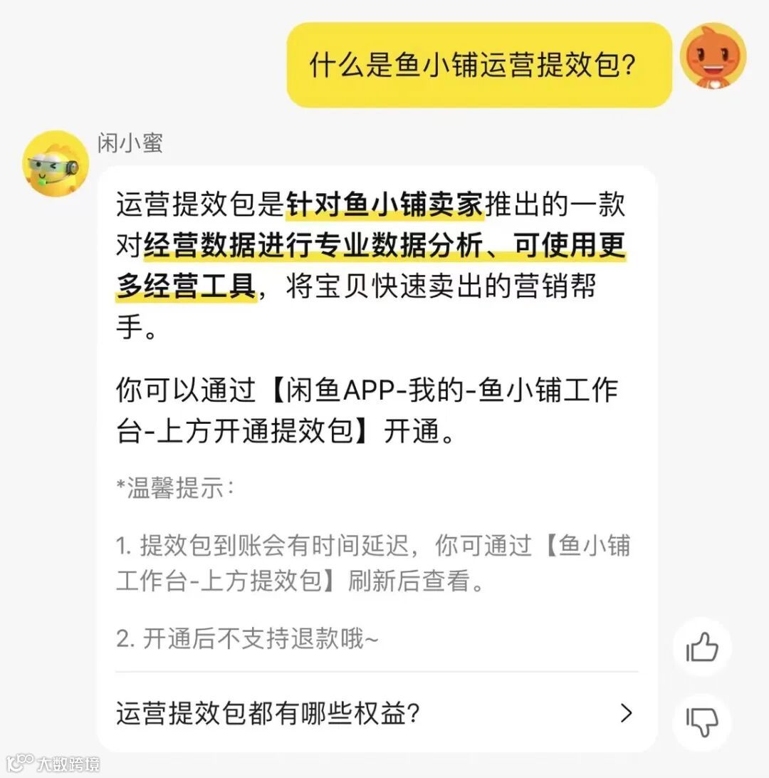 如果你的店铺正面临商品容量不足、流量下滑、订单减少的问题,不妨试试开通提效包,在竞争越来越激烈的闲鱼平台,用好工具往往能让你比同行快一步;但如果还是新手,建议先打好基础,等运营步入正轨后再考虑。