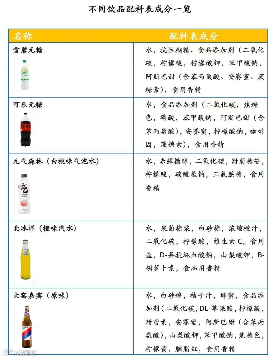 ▲图:不同饮品配料表成分(制图:零态LT)
