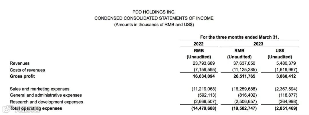 ▲图:2023Q1拼多多业绩情况