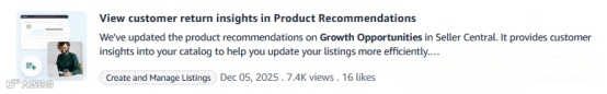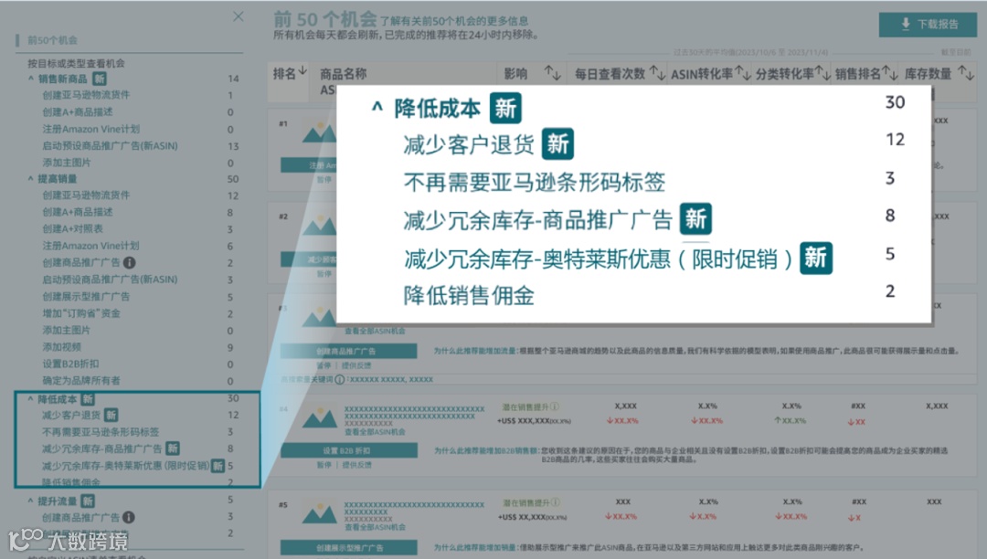近期,亚马逊在卖家后台【增长潜力看板】中新增【降低成本选项卡】,允许卖家在“商品推荐”中查看买家退货数据分析,结合AI技术提炼真实反馈,精准定位商品信息问题,优化Listing以减少退货、提升效益。