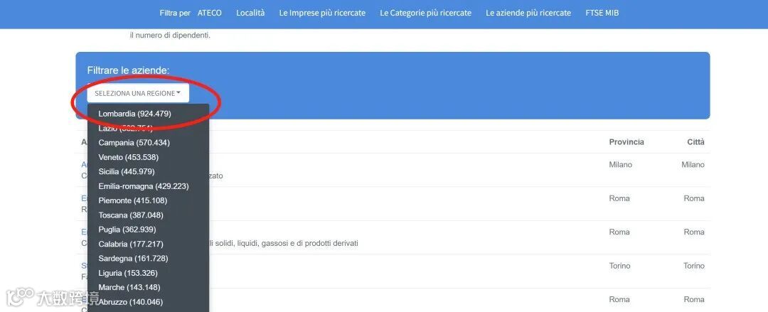 咱们直接在平台的搜索框里输入关键词 illuminazione(意大利语 “照明” 的意思),就能快速筛选出一批和照明产品相关的意大利企业名单。 因为这是根据公司名称关键词去匹配的,所以只能筛选出公司名带有 illuminazione的企业,企业并不全面,只能部分筛选,搜索功能还是建议知道具体的公司名称时精细搜索