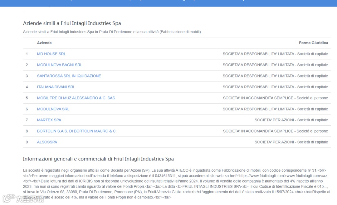Informazione Aziende是一个意大利本土的企业名录信息查询平台,该平台数据由意大利工商注册局实时同步,具有官方权威性,常被外贸从业者、投资者等用于查询意大利企业的基础及经营相关信息,是对接意大利企业时初步调研的实用工具,记录了约750万家意大利企业,网站只有意大利语,大家使用的时候,需要借助一些翻译工具来查看,更方便浏览。