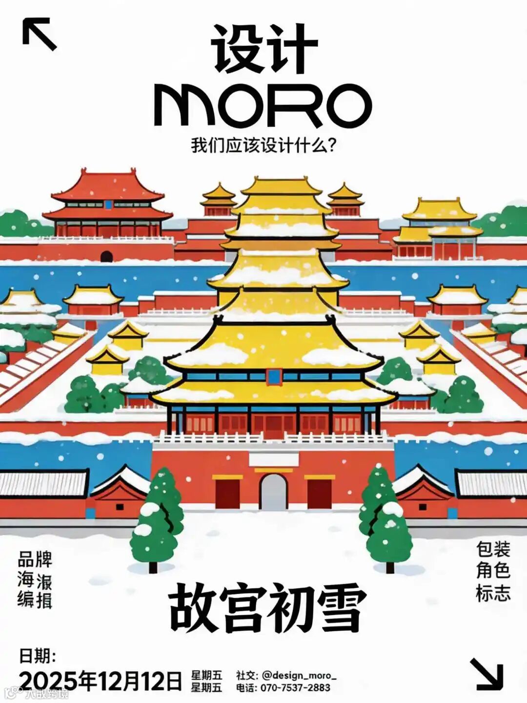 提示词和参考图直接就自动导入了:模仿这张参考图,生成一张类似风格的、今天(2025年12月11日 周五)北京初雪的海报,北京的草原可以换成雪中故宫