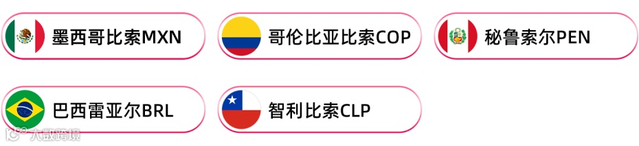 支持墨西哥比索、巴西雷亚尔等主要经济体本币收款,契合当地用户支付习惯,提升业务接入友好度。