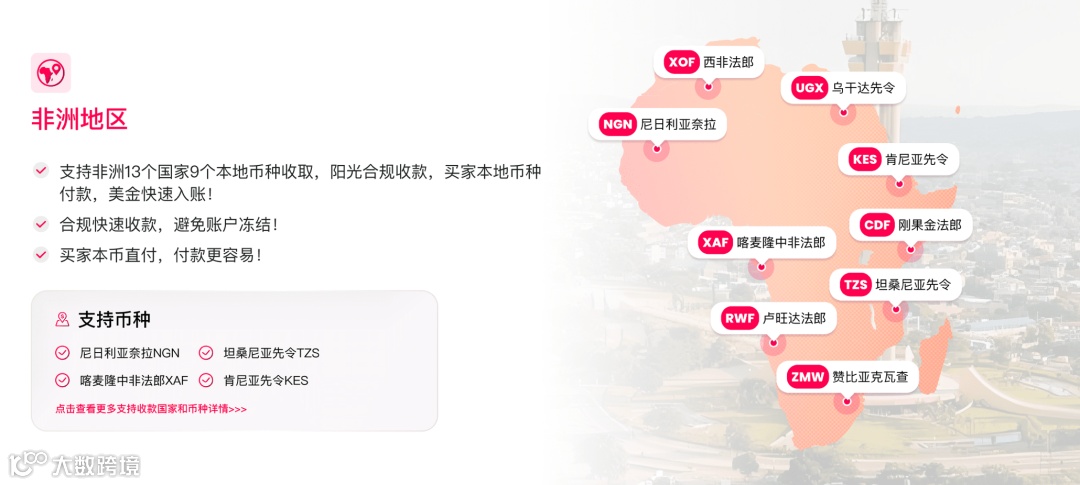 支持非洲13国9个币种本币支付,破解支付碎片化难题,实现贸易直达本地。