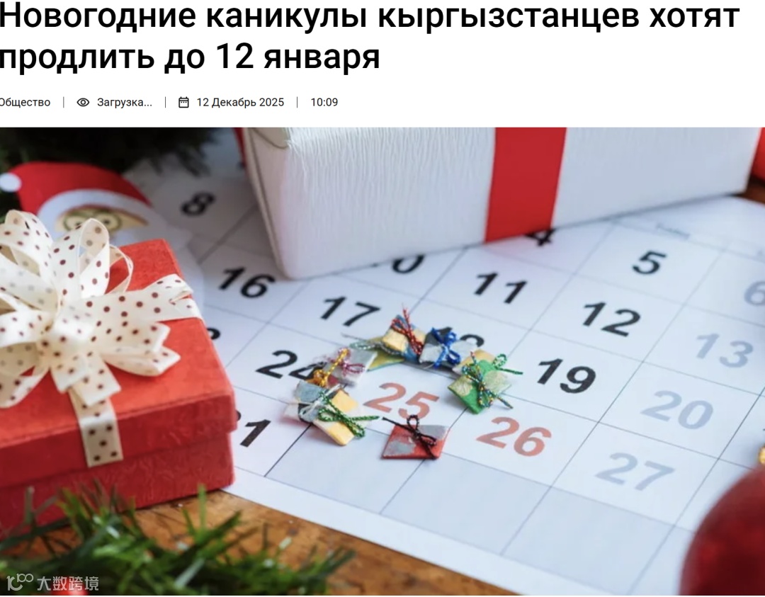 吉尔吉斯斯坦劳动、社会保障和移民部近日公布2026年官方假期安排,并提出将新年假期延长至1月12日的调整方案,目前该提案已进入公众讨论阶段。