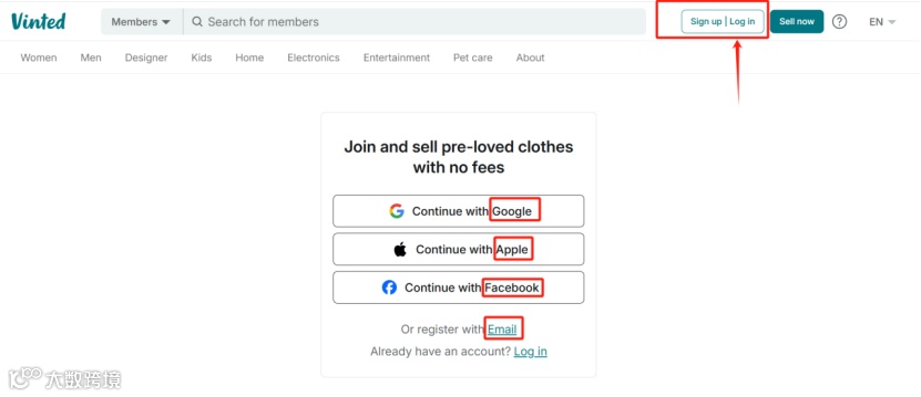 Vinted 允许通过 Facebook、Google、Apple ID 进行注册。但如果你需要注册多个账号,社交账号容易触发关联风控,比较不建议使用该方式。