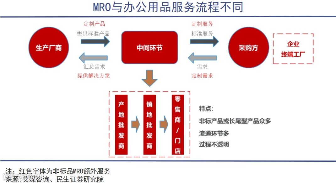 MRO涵盖工厂中不直接构成产品但不可或缺的物资,如螺丝、手套、仪表等,具有品类繁杂、需求零散、管理成本高等特点。中国MRO市场高度分散,前五大企业合计市场份额仅约1.5%,远低于美国成熟市场的30%-45%。