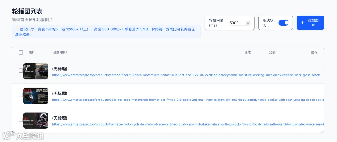 比如要换首页的轮播海报,点击轮播图管理。上传图片就好,简单不简单。