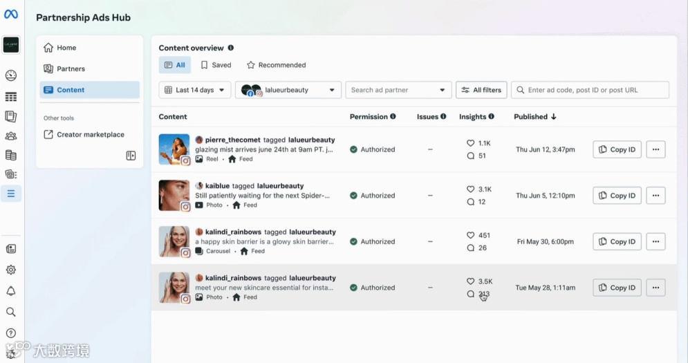 - 丰富创作者内容发现:在“全部”和“推荐”选项卡中查找与品牌相关的用户生成内容(UGC)及Instagram合作帖;