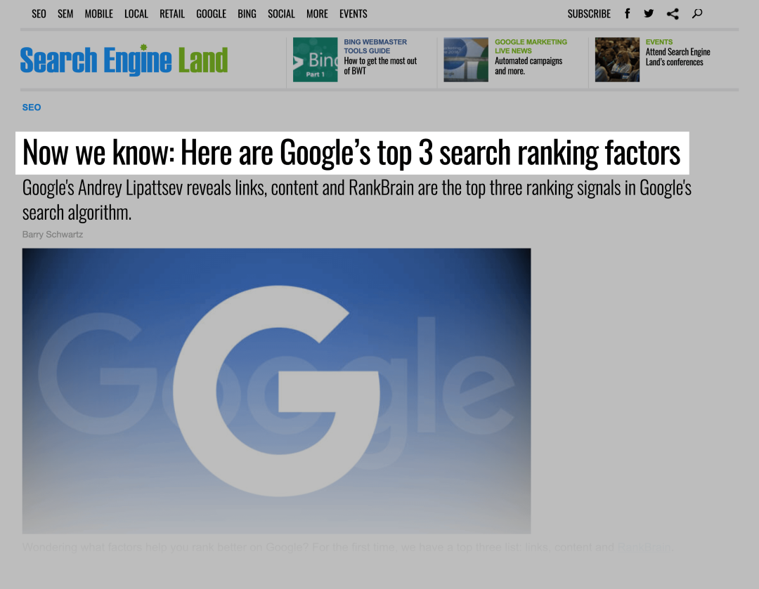 RankBrain 属于他们排名体系中的“前三大核心因素”之一。