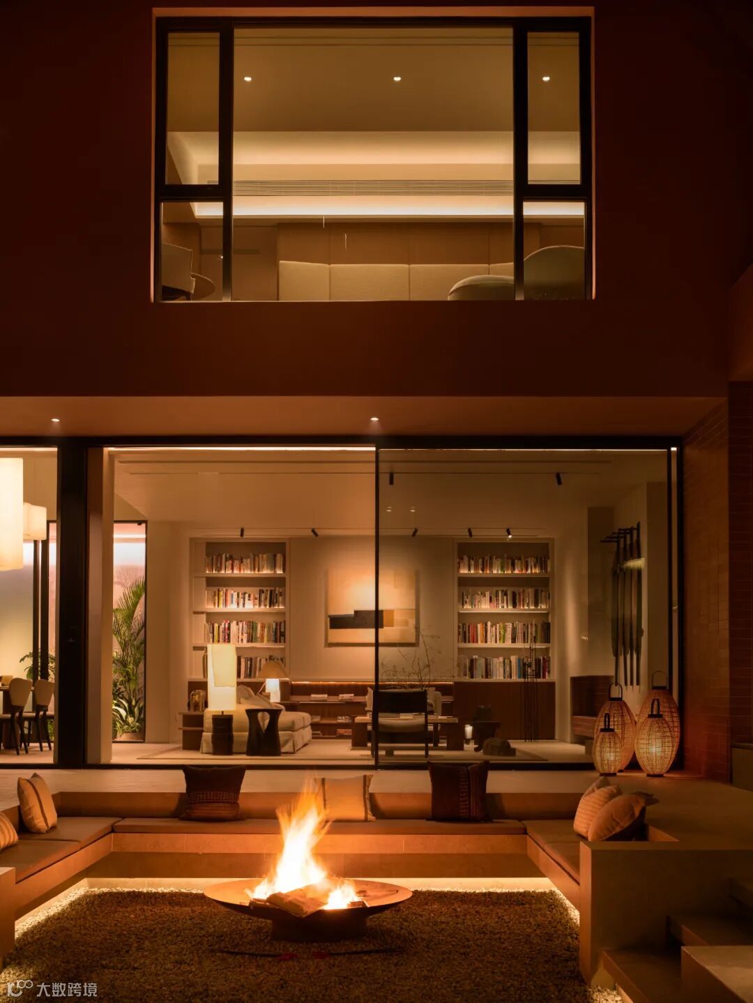 The living and dining room, along with the inner courtyards distributed in various areas, form an open and interconnected layout. The natural scenery of the courtyards penetrates through the glass interface, allowing the indoor and outdoor spaces to blend with each other. The restaurant creates a sense of visual openness with its multi-storey high ceiling, and the naturally hanging chandeliers endow the space with a touch of artistic and warm atmosphere.
