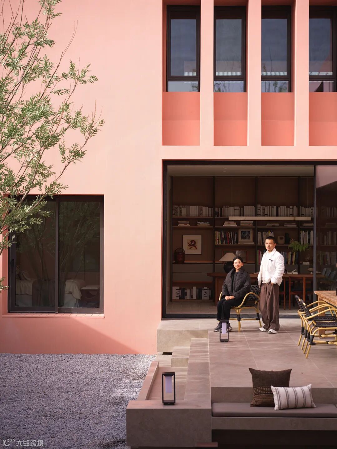 建筑立面以“一层面砖筑基,二层涂料筑梦”为核心逻辑,让材质与色彩成为对话土地与情感的媒介。设计师之所以选用红砖外立面与粉灰色的外墙色彩来进行搭配,灵感源于他们对当地环境色彩的一种观察,红色的砖墙,红色的屋顶,粉色的晚霞。他们希望能将这种环境色彩进行抽象提纯。不是复制,而是对地域色彩基因的一种 “记忆性表达”。