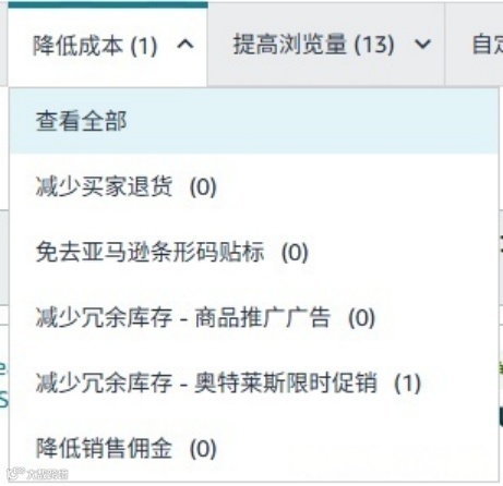 提示:若【降低成本】选项卡显示“0”,说明当前商品信息完整度较高,买家认知清晰,退货风险较低,属正常情况。