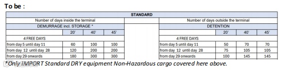 免费堆存及用箱时间从7天调整为4天,自第5天起收费