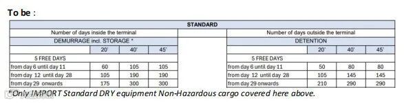 免费堆存及用箱时间从7天调整为5天,自第6天起开始收费