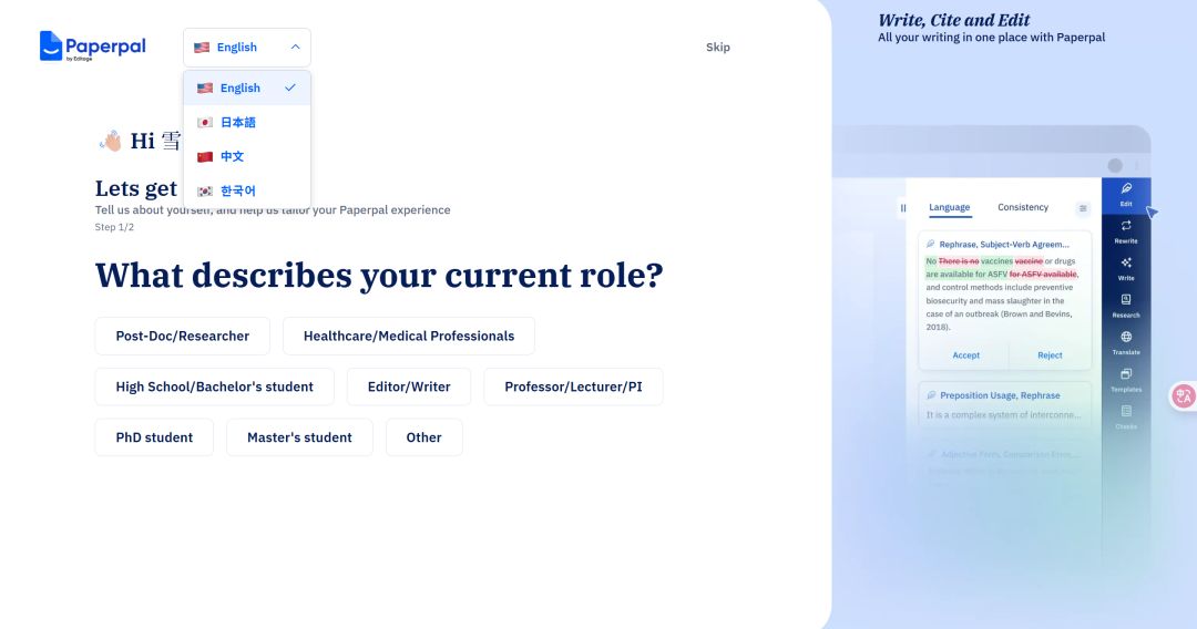 国际版:https://paperpal.com/【需要科学上网】