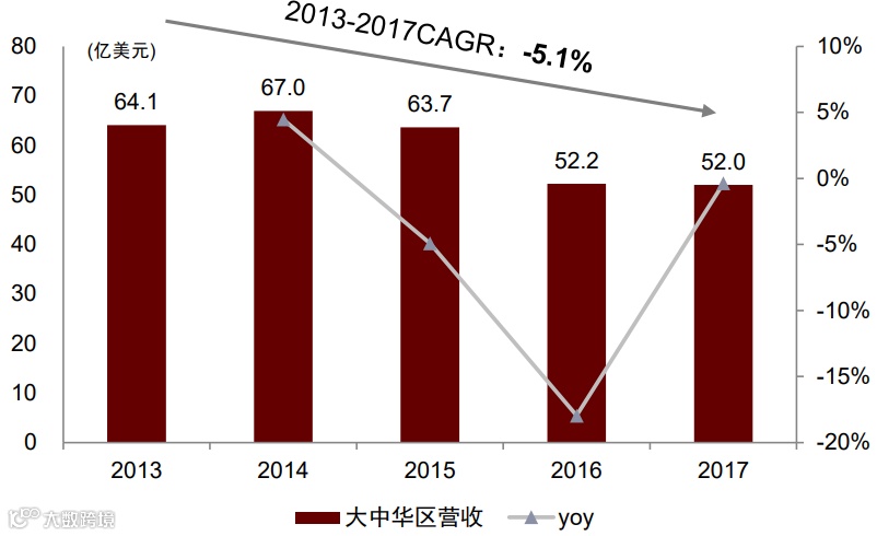 图表20:宝洁中国区营收变化(2013-2017)