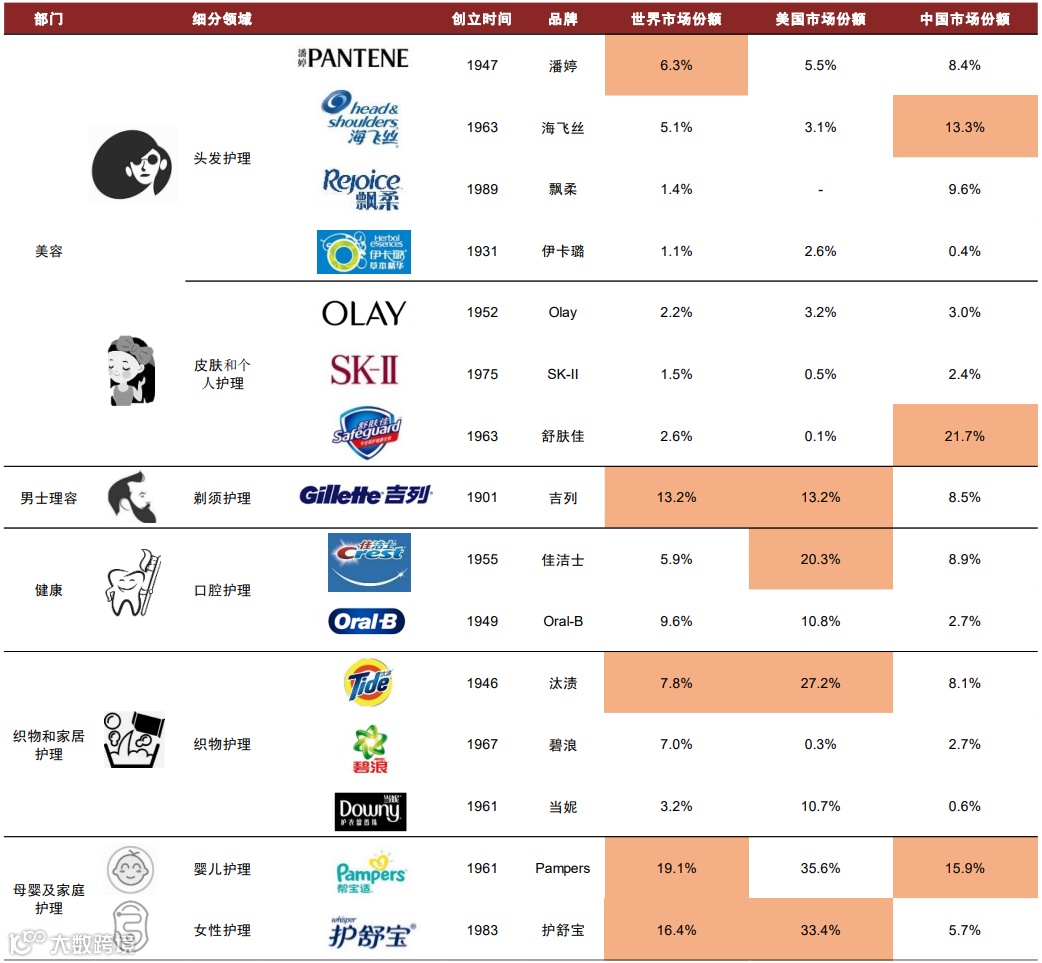 图表4:宝洁先后打造了多个全球领先的知名消费品牌