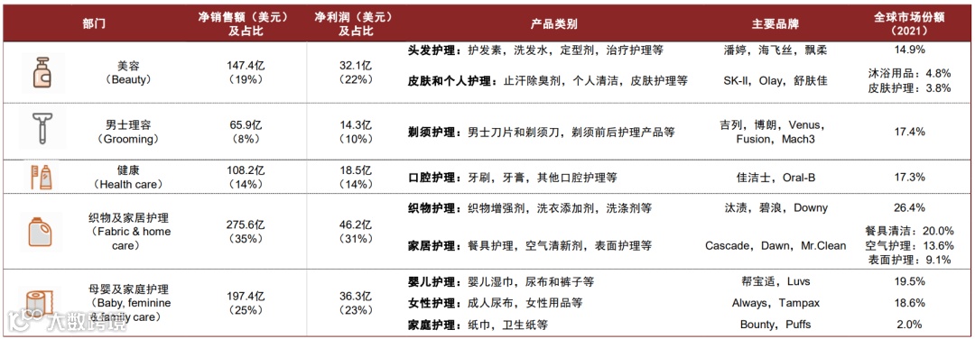 图表5:宝洁主要品牌矩阵(2021年)