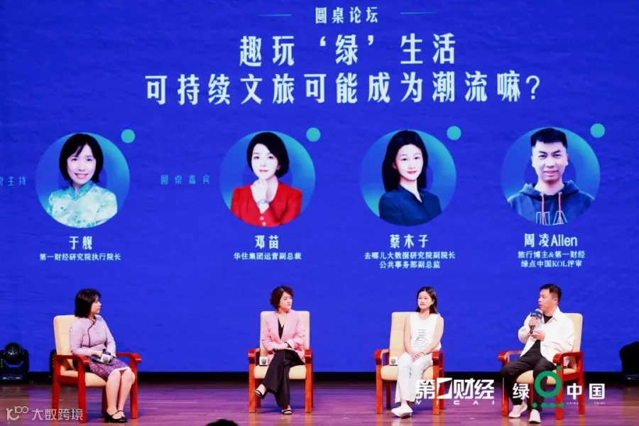 现如今,可持续文旅正成为旅游业高质量发展的关键方向。针对此,第一财经研究院执行院长于舰与华住集团运营副总裁邓苗,去哪儿大数据研究院副院长、公共事务部副总监蔡木子,旅行博主&第一财经绿点中国KOL评审周凌Allen共同探讨绿色旅游的发展前景。