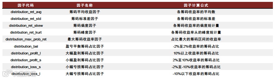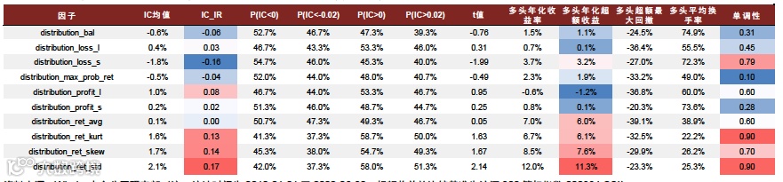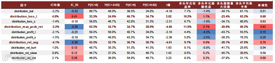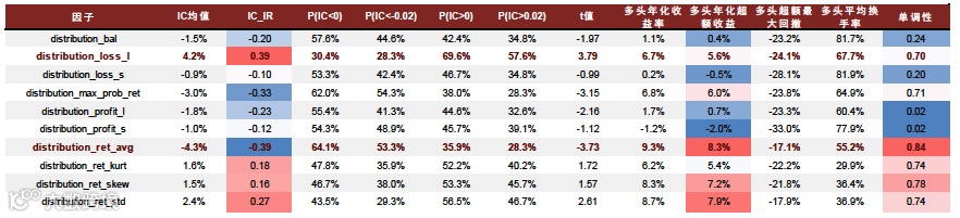 该类因子通过持仓成本分布构建均值、标准差、偏度等指标。在沪深300和中证500中IC表现较弱,但在全市场和中证1000中具备一定选股能力,IC_IR绝对值约0.40[k]。