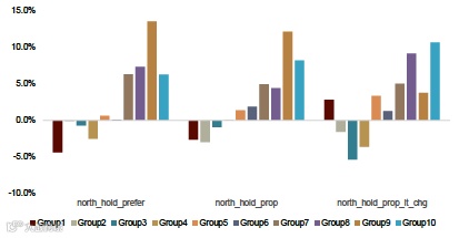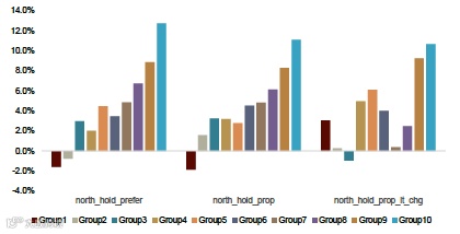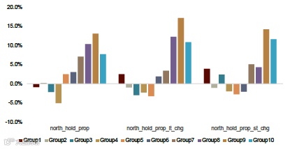 7)北向资金因子:持仓占比整体有效,变化因子多头收益高
