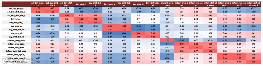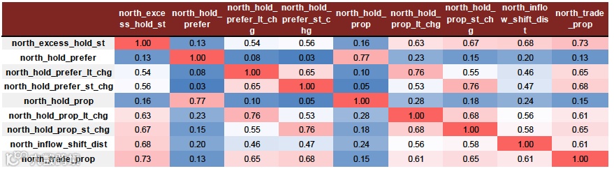 图表78:全市场范围内北向资金流因子之间的相关性统计