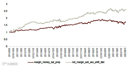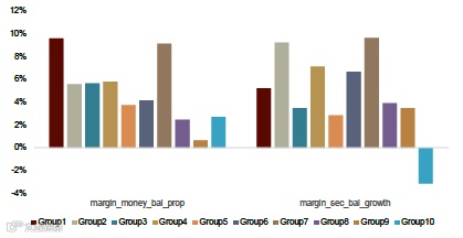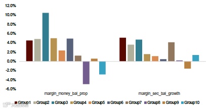 margin_money_bal_prop因子在各指数范围内长期跑赢基准,但多头组合存在阶段性失效,分组单调性不稳定,受市场风格影响较大[k]。