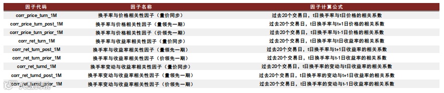 量价相关性因子用于衡量换手率与价格或收益率的联动关系,其有效性可从信息扩散理论解释:信息初期量能领先价格,中期同步,末期出现“羊群效应”。研究构建了换手率与价格、收益率的相关性因子,涵盖量能领先、价格领先与同步三种情形。