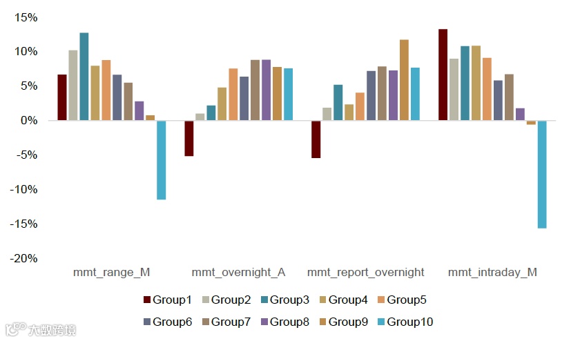 注:1)统计时间为2016-07-01至2022-06-30;2)超额收益的比较基准为中证1000指数000852.SH;3)Group1为因子值最小一组,Group10为因子值最大一组