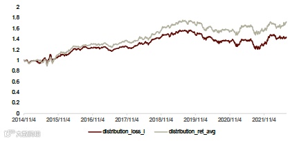 该因子与distribution_loss_l空头均显著跑输基准,多头表现一般,且自2019年起多头净值出现回撤,显示其预测能力有所减弱[k]。