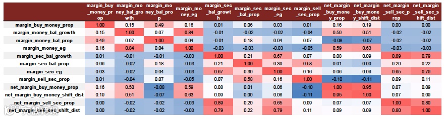 图表90:全市场范围内融资融券因子之间的相关性统计