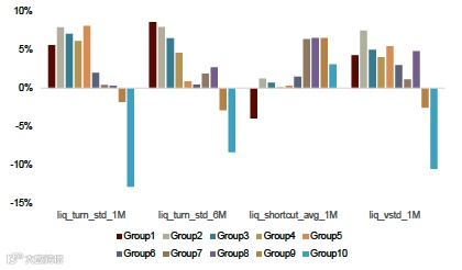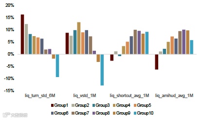 图表35:沪深300范围内表现较好的流动性因子分组年化超额收益统计
