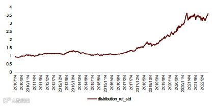 图表22:沪深300范围内表现较好的波动率因子多头组合相对净值