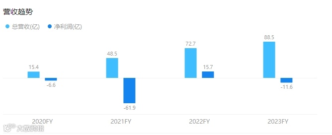 尽管业务量和收入都呈增长趋势,但该公司年内却亏损高达11.56亿美元,而2022年为盈利15.73亿美元。